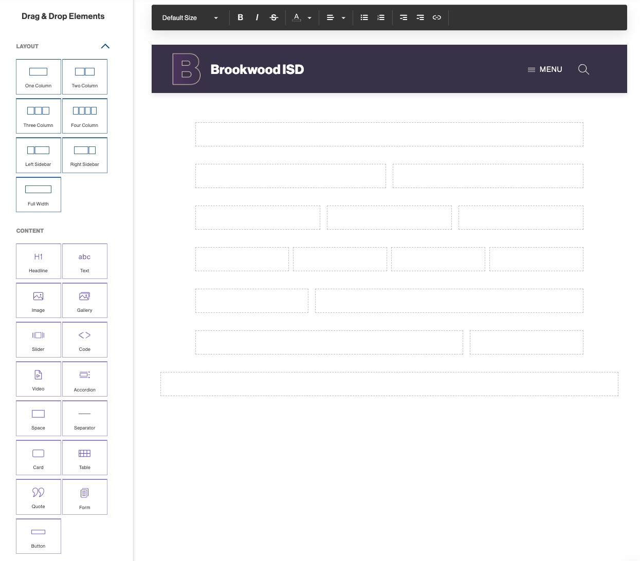 Layout Elements are drag and drop items that can be used to create column layouts on your page.