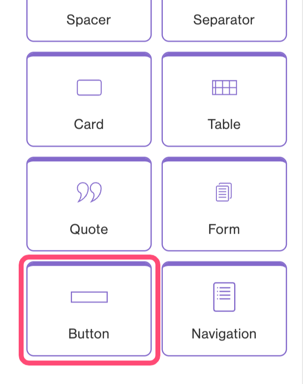 Buttons, like all elements in CMS have a drag and drop functionality. Buttons can be edited on the side bar by changing their color, size, shape, and more.