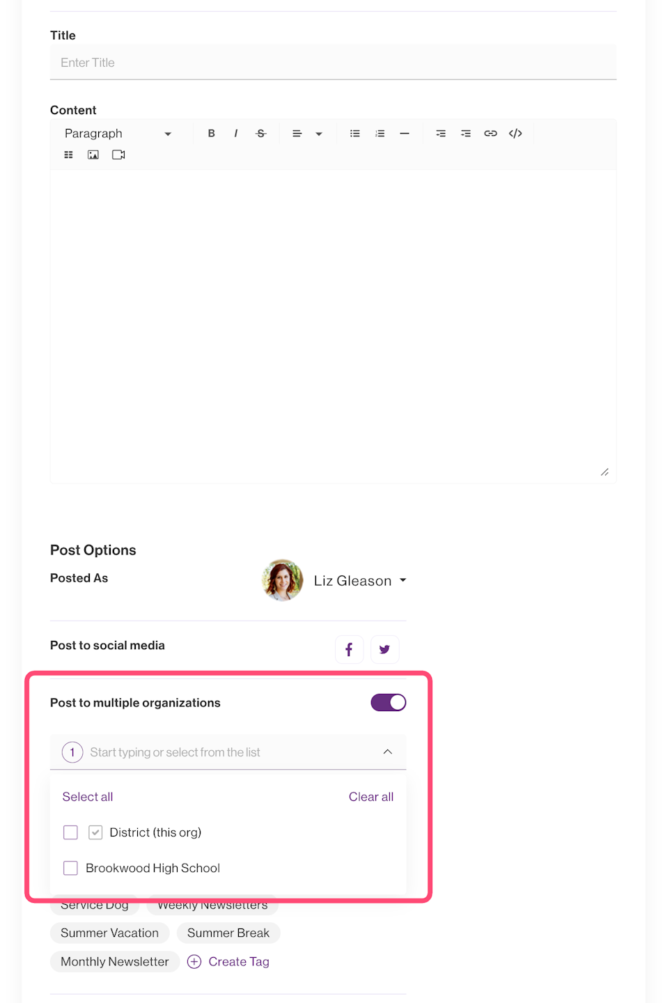 If social media selected in the original Live Feed and News Feed post is available at the other organization levels that are being Global Posted to, the social media accounts connected to those pages will also send out a post.