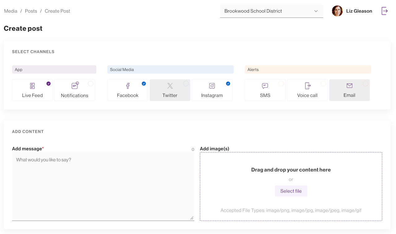 In addition to sending a post to your organization’s Live Feed which is published on your website and app, you can also publish it across different channels at the same time.