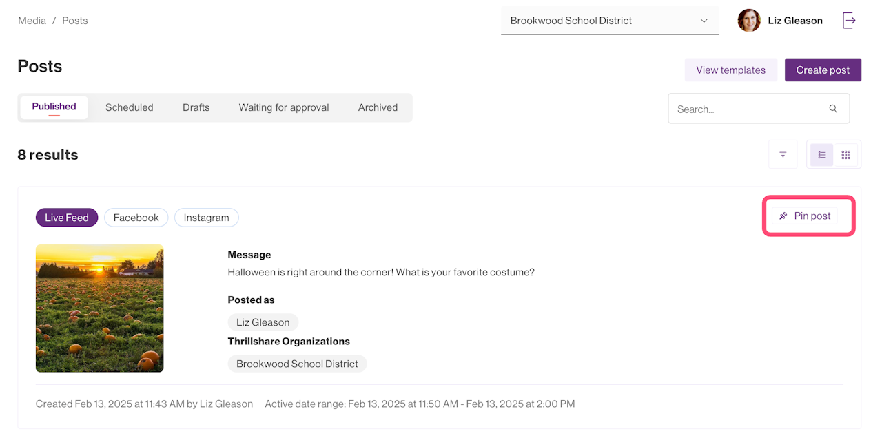 Pinning a Live Feed Post
