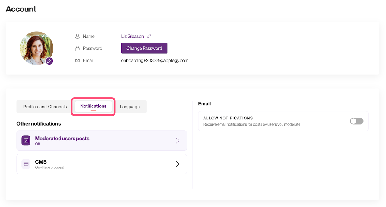 Email Notifications assist you in being notified about requests from Live Feed, News Feed, and CMS.