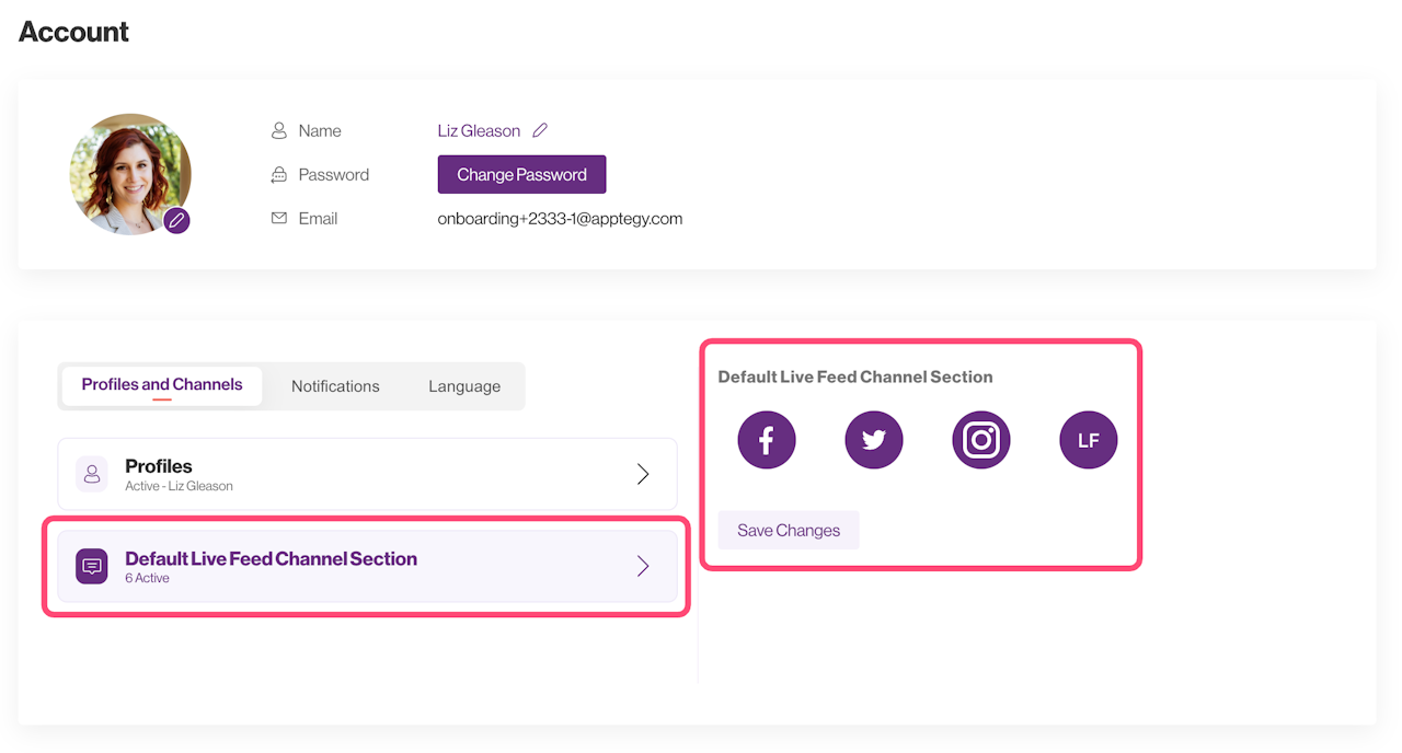 Setting your default channels saves time when posting to Live Feed by ensuring your frequently used channels are preselected.