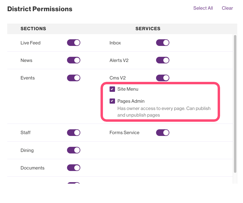 There are two additional CMS sub-permissions available at the User Level