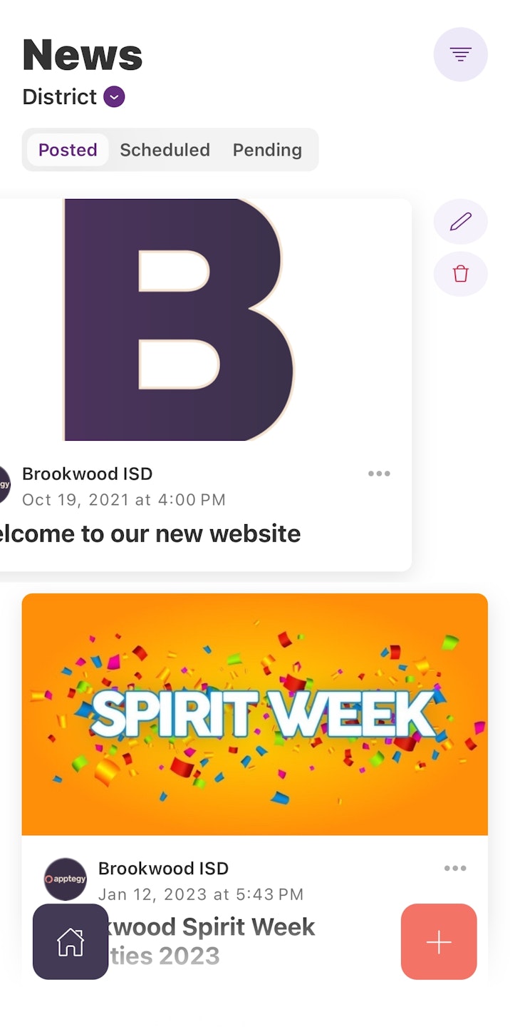 Posted - this section contains News articles that were previously published and are visible on your app and/or website