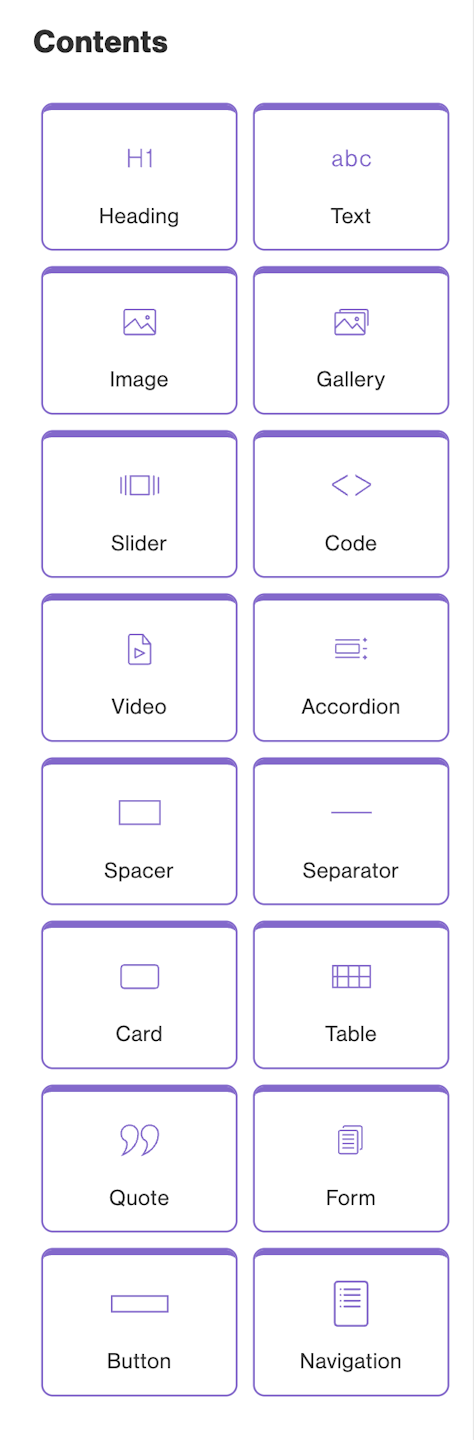 Content elements are what enable you to add text and images to your page. All Content elements must be nested within Layout elements.