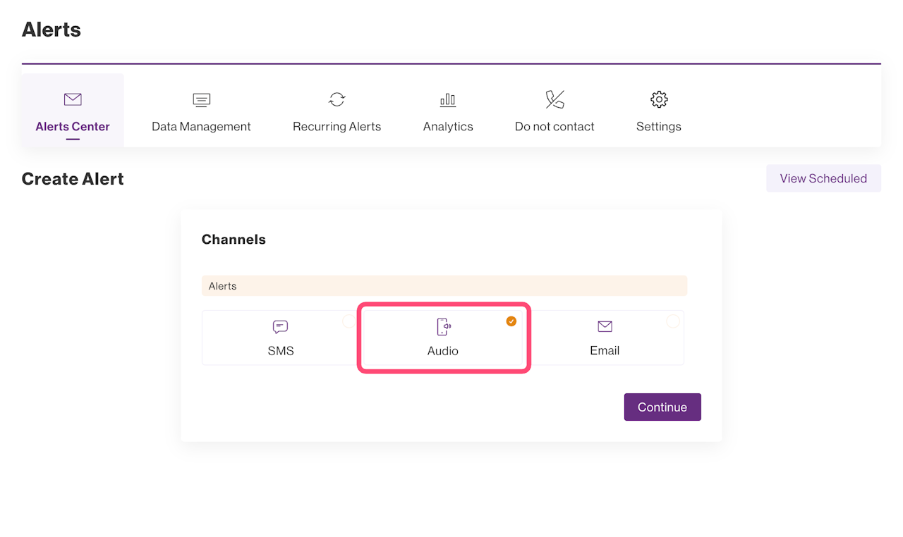 After hitting continue, two options are available for Audio messages: