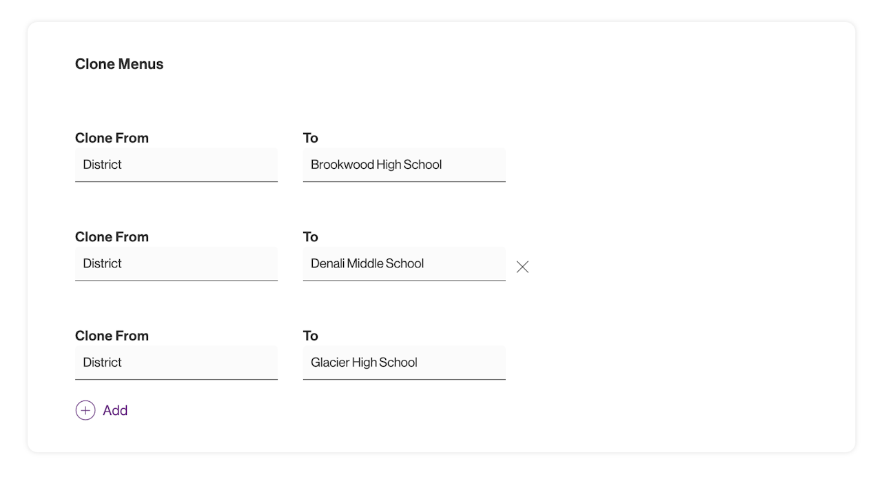 Dining Cloning using the "Clone Menus" feature allows dining information entered in one or more locations to copy to other locations.