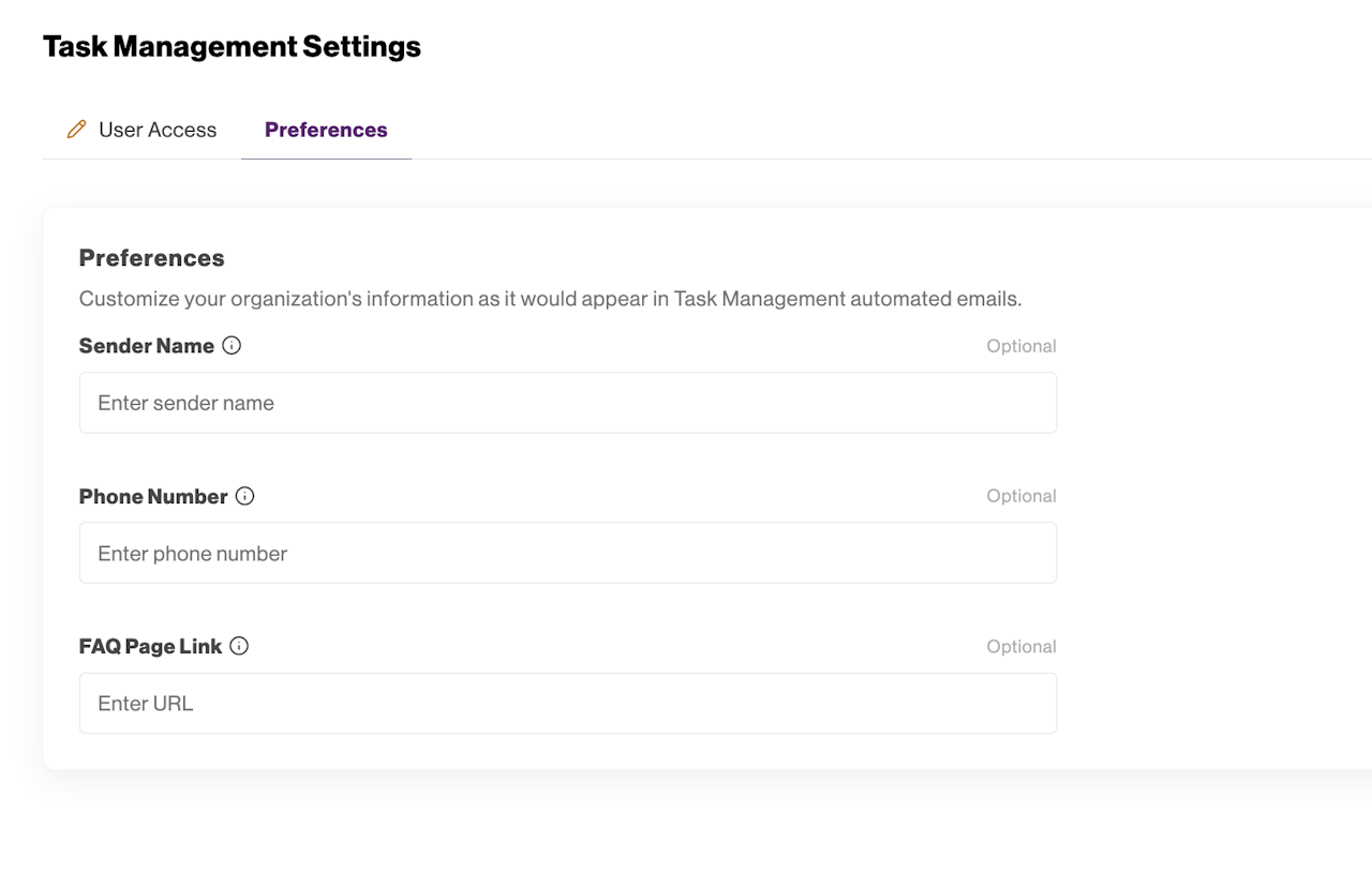 You can find the Preferences section in the Tasks tab on the left side of the screen under the Settings section. In this section you can configure: